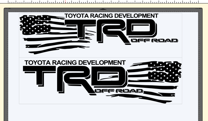 TRD Offroad bedside decal with waving distressed American flag. 20"x6.5"