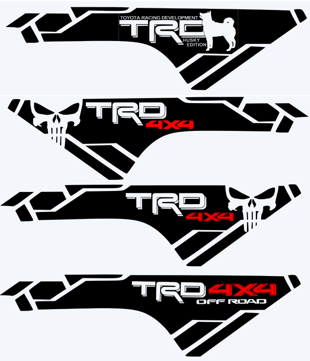 TRD Pro Style decals, customized any way you like. See pictures.After Placing your order, you can log back in and add notes to exactly what you would like on the decal.