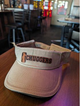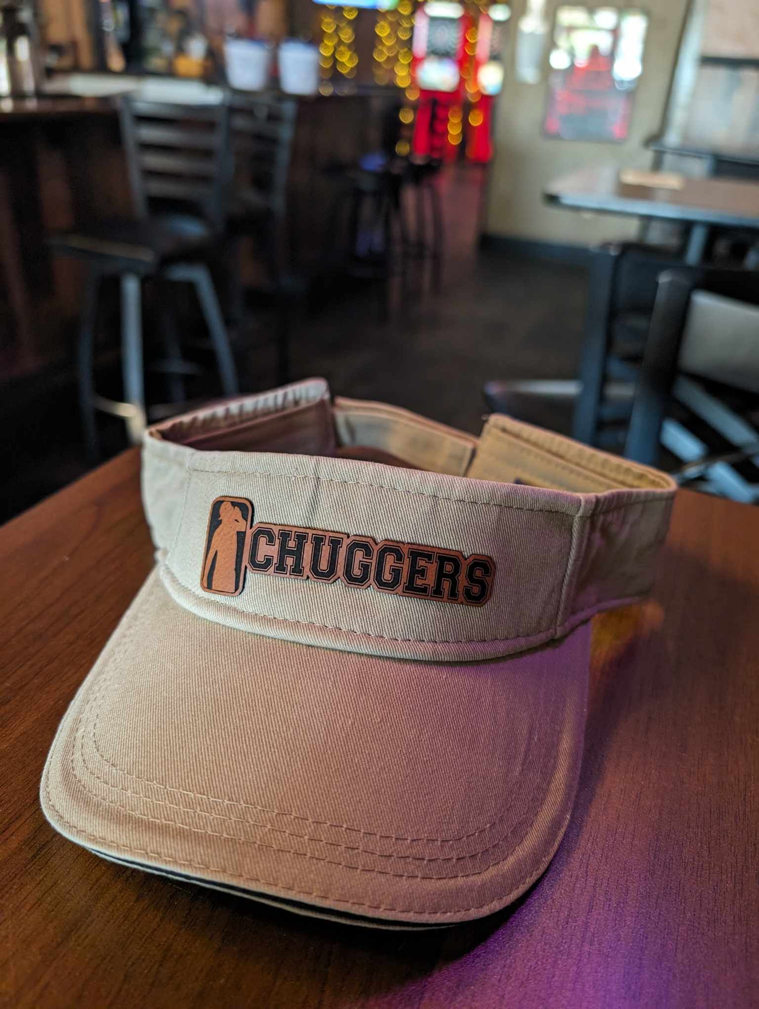 Heavy duty Khaki visor, velcro back with CHUGGERS patch