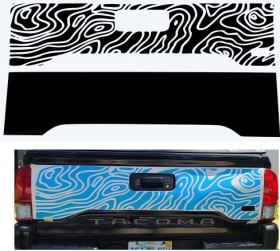 Non topo design does NOT have the tailgate handle cut out. It is designed for you to remove the tailgate handle during install, and wrap the excess inside the tailgate handle hole. This way there is no ugly gap between the handle and the vinyl.